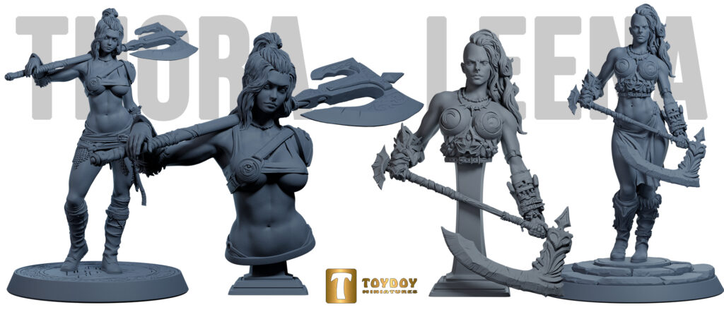 Oltre alla grande varietà di miniature di Artisan Guild, Cobramode, Witchsong e Bite te Bullet, abbiamo introdotto i modelli di Thora e Leena, realizzate dallo studio ToyDoy, che vedete qui sotto. Consultate subito il nostro catalogo nel quale potrete ammirare tutte le versioni che variano dal modello completo al busto!
