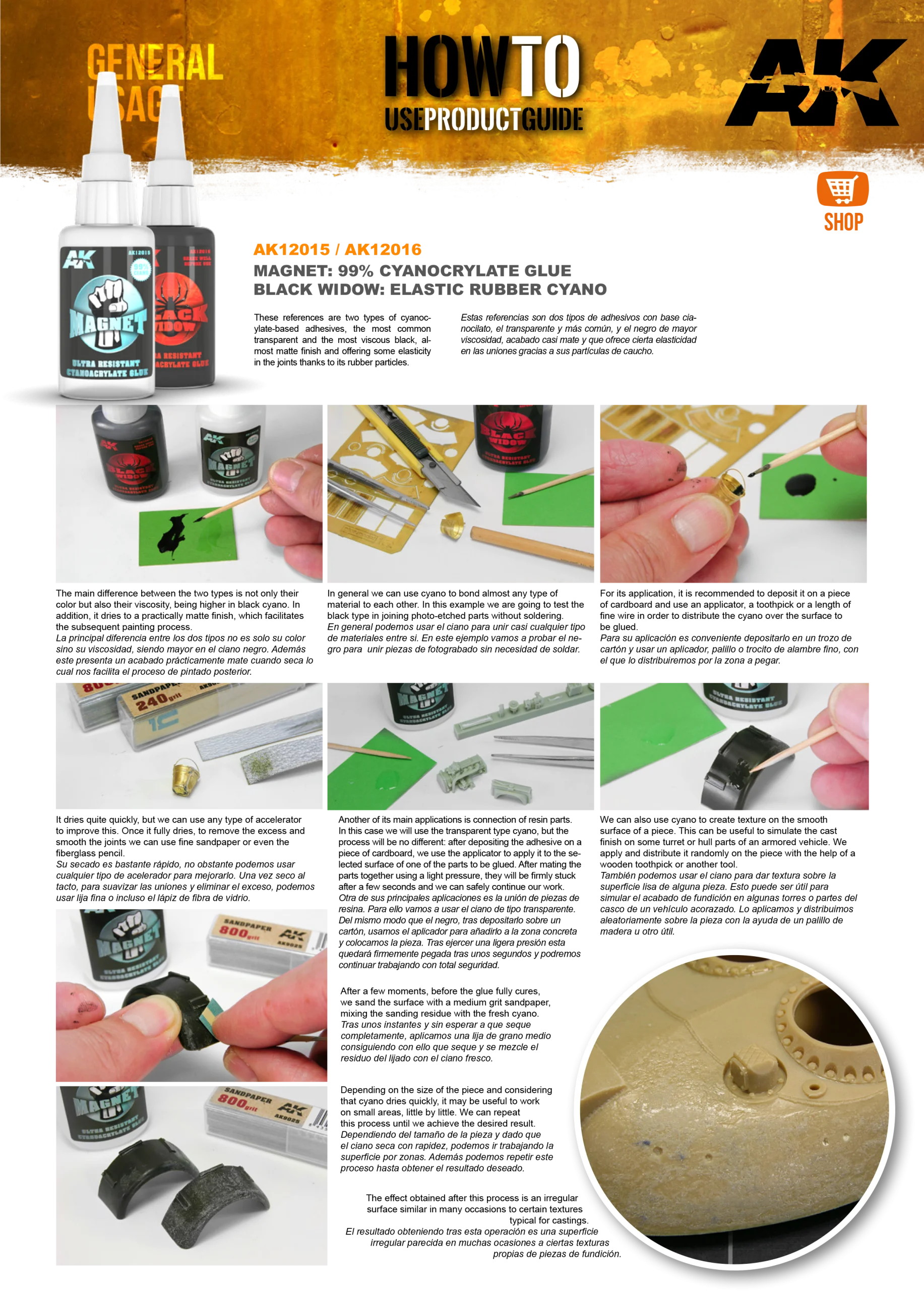 Cyanoacrilato universale 401. Asciugatura rapida, extra forte, bassa viscosità, appositamente formulato per l’adesione tra materiali che possono anche avere una superficie acida. Può essere utilizzato con gomma, pelle, legno, metallo, resina e plastica. Le superfici da unire devono essere prive di sporco, polvere e grasso. Si dovrebbe applicare una piccola quantità di adesivo; una maggiore quantità di cianoacrilato non garantisce una migliore adesione e rende più difficile l’asciugatura dell’adesivo, che è efficace per l’incollaggio.